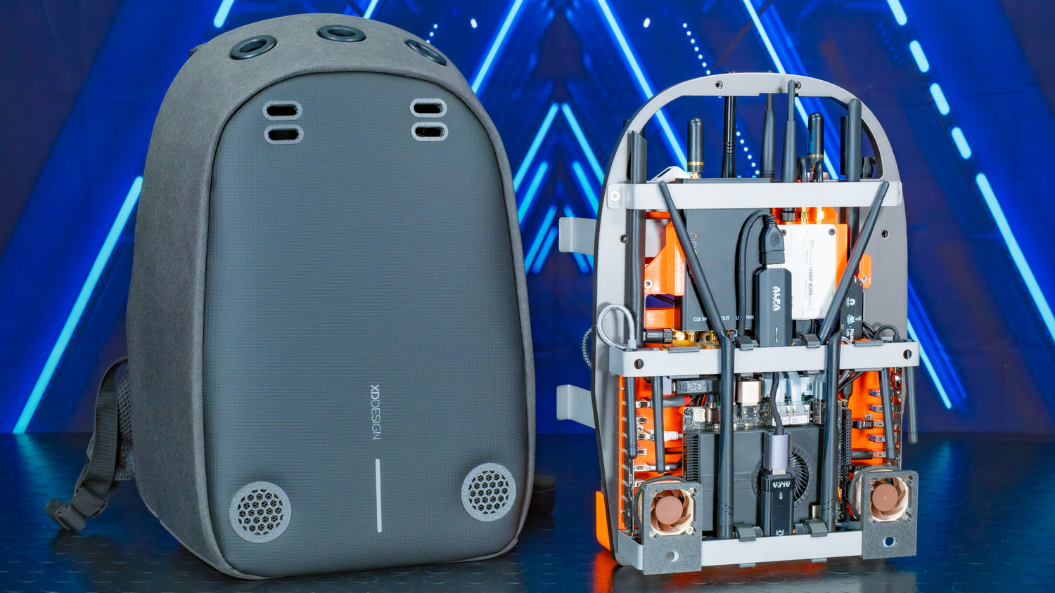 Compact build that integrates Software Defined Radios (SDRs), Wi-Fi adapters, and a multi-protocol board, all connected to an onboard computer. Thanks to the built-in router, it is possible to access and control the entire system remotely via smartphone, tablet, or PC. This versatile setup allows for performing spectrum analysis, decoding radio signals, and interacting with various wireless devices, all without having to open the backpack.